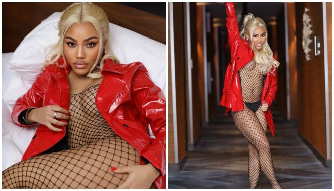 Ooo alright now! Supa Peach must’ve been in a naughty mood this week. Not only did she turn herself into a blonde, but she bared a lot a skin in her fishnet jumpsuit look.