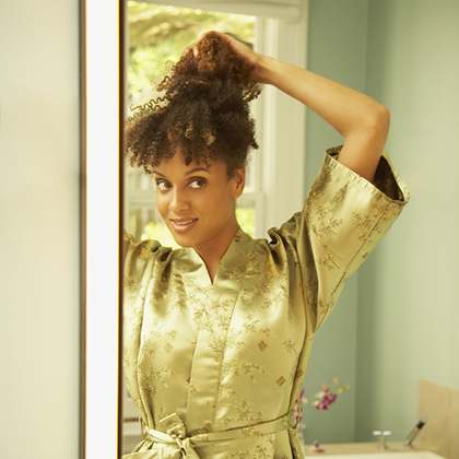 Warm pink or amber light gives your skin a beautiful glow that paints your body and its curves in the most flattering light. Pop in new bulbs or a warm lamp shade before your next overnight guest to play with seeing yourself in the best light.